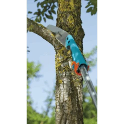 De GARDENA combisystem snoeizaag 300 PP met een zaagbladlengte van 325 mm kan flexibel worden gebruikt afhankelijk van waar u wilt zagen: als u takken onder handbereik wilt zagen, gebruikt u de snoeizaag eenvoudig als “normale” handzaag. De zaag ligt goed in de hand dankzij het ergonomische handvat met softgrip componenten. Als u takken tot een hoogte van 5 meter wilt afzagen, vergroot u het bereik van de snoeizaag door een combisystem telescoop steel te gebruiken. Praktisch: plaats de combisystem steel eenvoudig op de zaag. De veiligheidsvergrendeling garandeert een muurvaste verbinding. Gezette zaagtanden met impulsgeharde tandpunten, aan beide zijden geslepen zorgen voor veilig zagen. Dankzij een speciale coating, is de CS snoeizaag 300 PP optimaal beschermd tegen roest. Een stop op het uiteinde van het handvat beschermt uw hand tegen wegglijden, ook bij trekkende bewegingen. Met ophangoogje en mesbeschermer om de zaag veilig te kunnen opbergen.