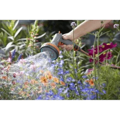 De Gardena comfort multi broes is ideaal voor diverse bewaterings- en reinigingsklussen. Bij deze broes is de waterstraal instelbaar in vijf standen. De nevelstraal is perfect voor het bewateren van zaaigoed. De zachte straal of broesstraal zorgt ervoor dat de bloembedden goed kunnen worden bewaterd. De harde straal is voor reinigingswerkzaamheden. De softgrip componenten zorgen voor een slipvaste grip op de comfort multibroes. De ergonomisch vormgegeven impulshendel kan met de geïntegreerde knop worden vastgezet. De waterstraal is met 1 vinger traploos in te stellen. Een geïntegreerd filter zorgt er voor dat er geen vuil in de broes zelf kan komen. Dit filter kan eenvoudig worden losgehaald en gereinigd. De broes is vorstbestendig en daardoor ook bestand tegen temperaturen onder het vriespunt.