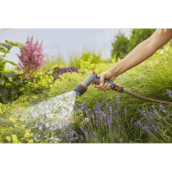 De GARDENA Comfort Reinigingspistool ecoPulse™ is geschikt voor zowel effectieve reiniging als voor besproeiing. De sproeier heeft de innovatieve ecoPulse™-straal. De oscillerende waterstraal is bijzonder effectief tijdens het reinigen van oppervlakken en bespaart tot 40 procent water in vergelijking met de standaard GARDENA harde straal. Drie andere spuitstanden (harde straal, vlakstraal en nevel) kunnen worden ingesteld. Het ergonomische handvat met zachte kunststofonderdelen zorgt voor optimaal bedieningscomfort tijdens het gebruik. De waterstroom kan traploos worden aangepast. Voor continue reiniging of besproeiing kan de pulstrekker worden vergrendeld om te voorkomen dat uw hand vermoeid raakt. Met geïntegreerde vorstbeveiligingstechnologie.