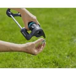 De EcoLine Zwenksproeier van GARDENA bewatert rechthoekige gazons of bloemperken van 90 tot 220 m² nauwkeurig en gelijkmatig, zonder dat er plassen ontstaan. Deze zwenksproeier, ontworpen met kunststof vervaardigd uit meer dan 65 procent gerecycled materiaal uit huishoudelijk afval, biedt de duurzame oplossing om uw gazon op warme zomerdagen te bewateren. De aluminium buizen van de sproeier bevatten meer dan 25 procent gerecycled materiaal. De gebruikte metalen elementen versterken de stevigheid en duurzaamheid van de sproeier en geven hem een stijlvol uiterlijk. Plaats eenvoudigweg de zwenksproeier op uw gazon, koppel een tuinslang aan de kraan, en zet de kraan open. Vervolgens kunt u het bereik van de sproeier gemakkelijk van 7 tot 17 meter aanpassen. De EcoLine vierkante sproeier heeft in breedte een bereik van maximaal 13 meter. Met de vierkante sproeier kunt u zowel een smal bloemperk als uw hele gazon sproeien. De zwenksproeier is uv- en vorstbestendig en u kunt hem dus het hele jaar door buiten laten. De sproeier heeft nog een handige en slimme functie waarmee de duurzaamheid wordt onderstreept: een ingebouwd, uitneembaar filter voorkomt dat de sproeier door vuildeeltjes verstopt raakt. Dit filter is gemakkelijk te verwijderen en eenvoudig onder de kraan schoon te maken. Als de sproeier verstopt raakt door kalk, kunt u de gaatjes met de meegeleverde reinigingsnaald gemakkelijk schoonmaken. De EcoLine Zwenksproeier wordt in Duitsland vervaardigd en de kwaliteit wordt door GARDENA ondersteund met vijf jaar fabrieksgarantie. Een natuurlijke keuze voor tuiniers met passie. ReTh!nk – De nieuwe EcoLine serie. Verantwoord geproduceerd. Esthetisch ontworpen. Duurzaam vervaardigd.