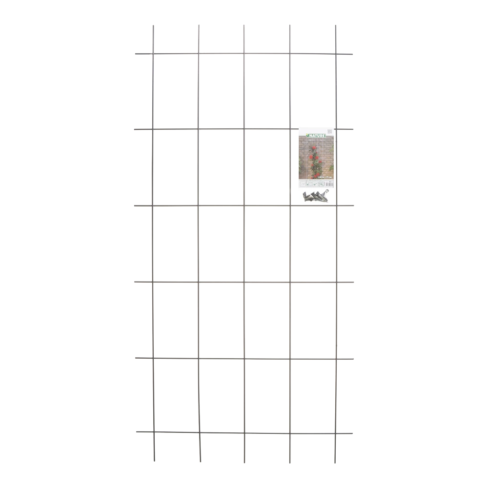 Decoratief rechthoekig metalen klimrek van Nature, gemaakt van grijs geplastificeerd verzinkt staal. Dit weerbestendige klimrek van duurzaam materiaal is geschikt voor het begeleiden en ondersteunen van klimplanten. Geleverd met bevestigingsset. Afmeting: H 145 x 72,5 cm.