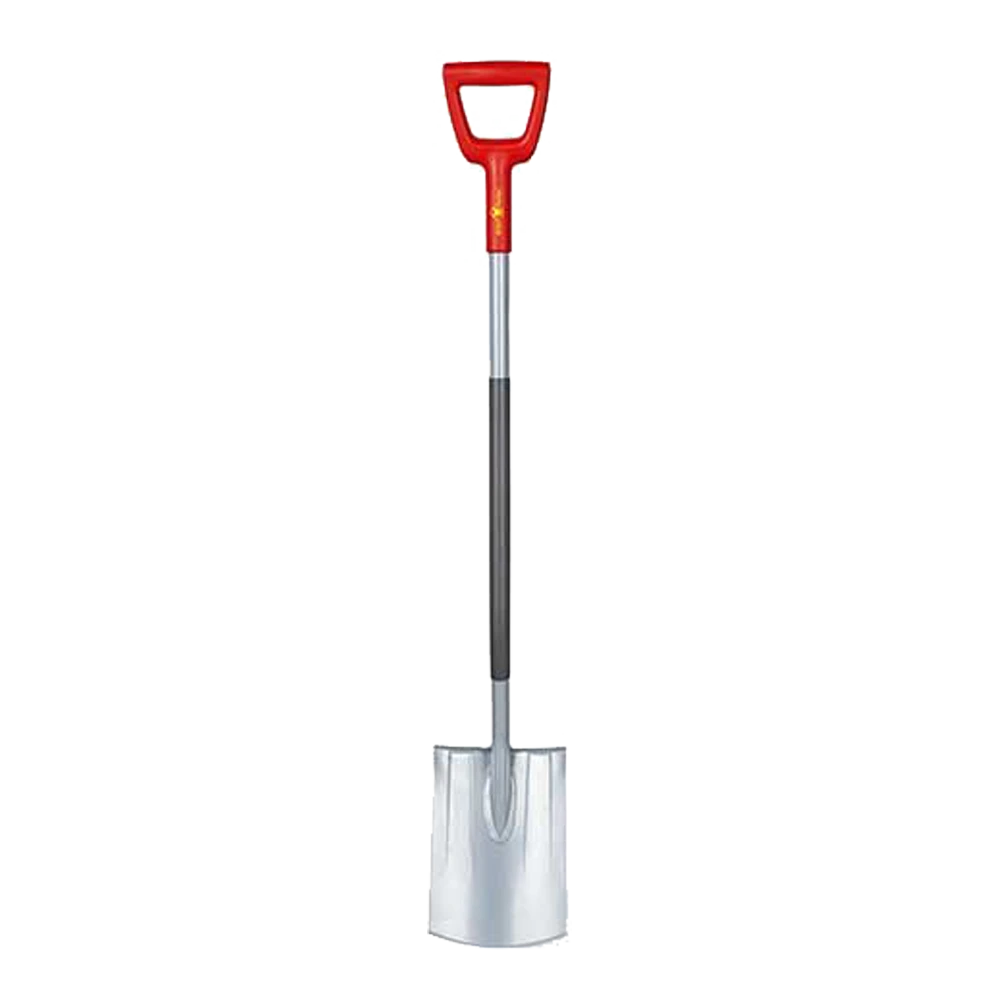 De WOLF-GARTEN spade heeft een versterkte stalen handgreep met antislip oppervlak voor comfortabel gebruik en een inductiegehard boorgelegeerd stalen blad voor maximale stabiliteit en duurzaamheid.