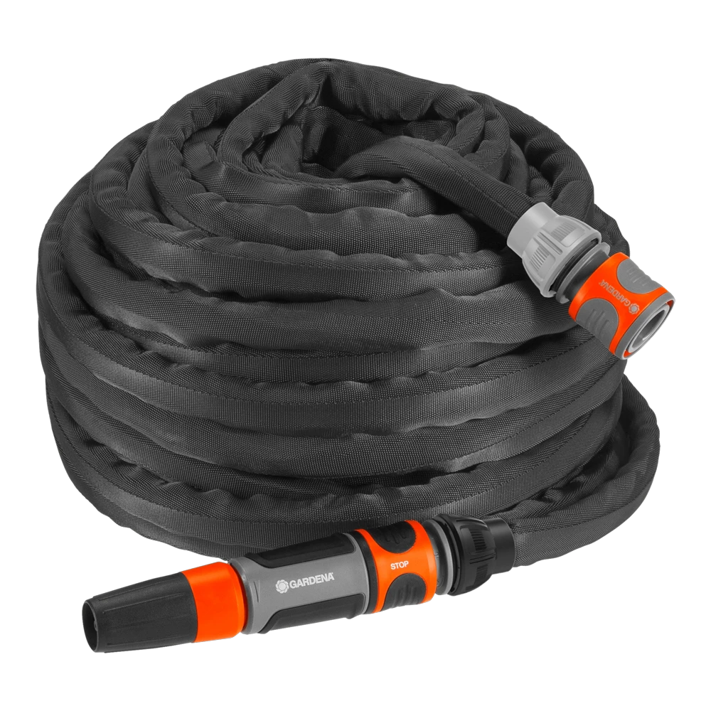 De GARDENA textielslang Liano™, gemaakt van zeer duurzaam textiel, is bijzonder handig in gebruik en uitzonderlijk wendbaar. De slang is bestand tegen maximale belasting in de tuin en is drukbestendig tot 35 bar. Het lage gewicht maakt opslag bijzonder gemakkelijk. Ook geschikt voor slangenwagens en -haspels. De textielslang Liano Set 20 m wordt compleet geleverd met een schroefkraanaansluiting die geschikt is voor drie verschillende kraanafmetingen, slangaansluitstuk, waterstop en reinigingssproeier.